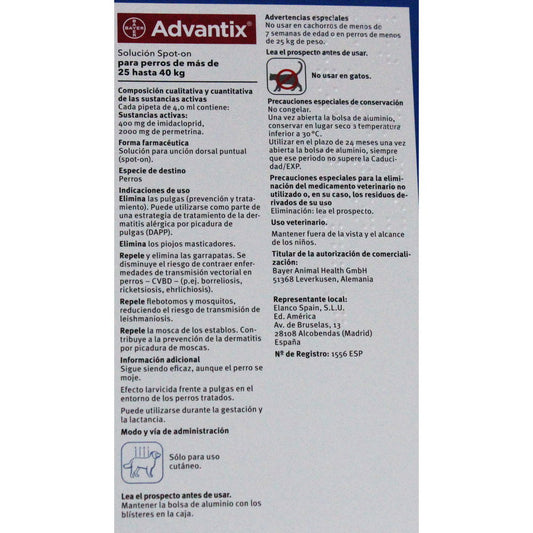 Advantix Solucion Spot-on Para Perros de mas de 25 Hasta 40 kg