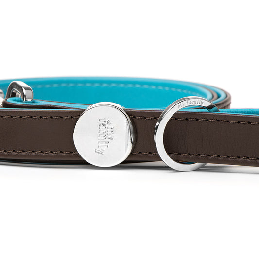 MYFAMILY CORREA PIEL PARA PERRO - HERMITAGE - MARRÓN/TURQUESA