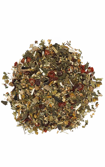 Ingredientes: flores y hojas de espino blanco 21 %, agripalma 21 %, muérdago, ginkgo 14 %, hierba de trigo sarraceno, escaramujo seco, raíz de cúrcuma | Nota complementaria: Receta sujeta a cambios. Se aplica la composición indicada en la etiqueta | Analytical components: proteína bruta 10,4 %, grasa bruta 2,9 %, ceniza bruta 7,4 %, fibra bruta 15,5 % | Fabricado sin: Cereales, gluten, harina de huesos, colorantes artificiales, aromatizantes y agentes de consorcio, azúcares añadidos, residuos de mataderos, potenciadores del sabor, experimentos con animales, ingeniería genética.