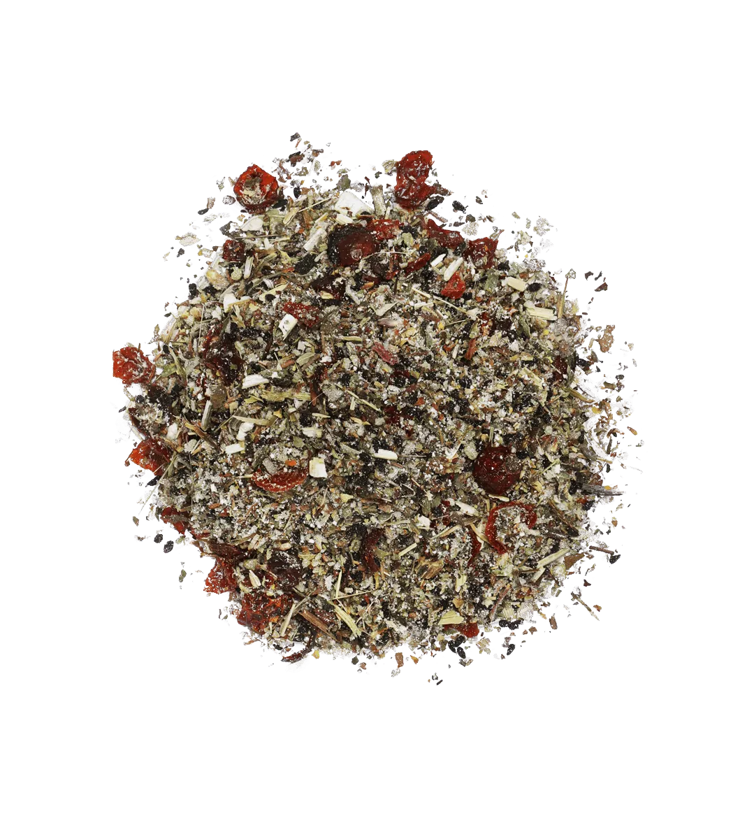 Hierbas regionales y naturales| Puede ofrecerse a perros con sobrepeso, sistemas inmunitarios debilitados y perros de edad avanzada | La equinácea contribuye a la generación de antioxidantes y favorece la neutralización de los radicales libres en el organismo | Hojas de ortiga para favorecer la depuración sanguínea y eliminar líquidos | Cuidadosamente rellenado a mano y con mucho amor | Materias primas sometidas a pruebas de sustancias activas y nocivas | Todas las hierbas cumplen las directrices de la GACP (Buenas Prácticas de Recolección y Cultivo de Plantas Medicinales) y son de calidad farmacopeica | Solo hierbas procedentes de cultivos sostenibles y parcialmente ecológicos | Cultivo sin pesticidas sintéticos ni abonos minerales | Sin potenciadores del sabor, aromatizantes artificiales ni conservantes