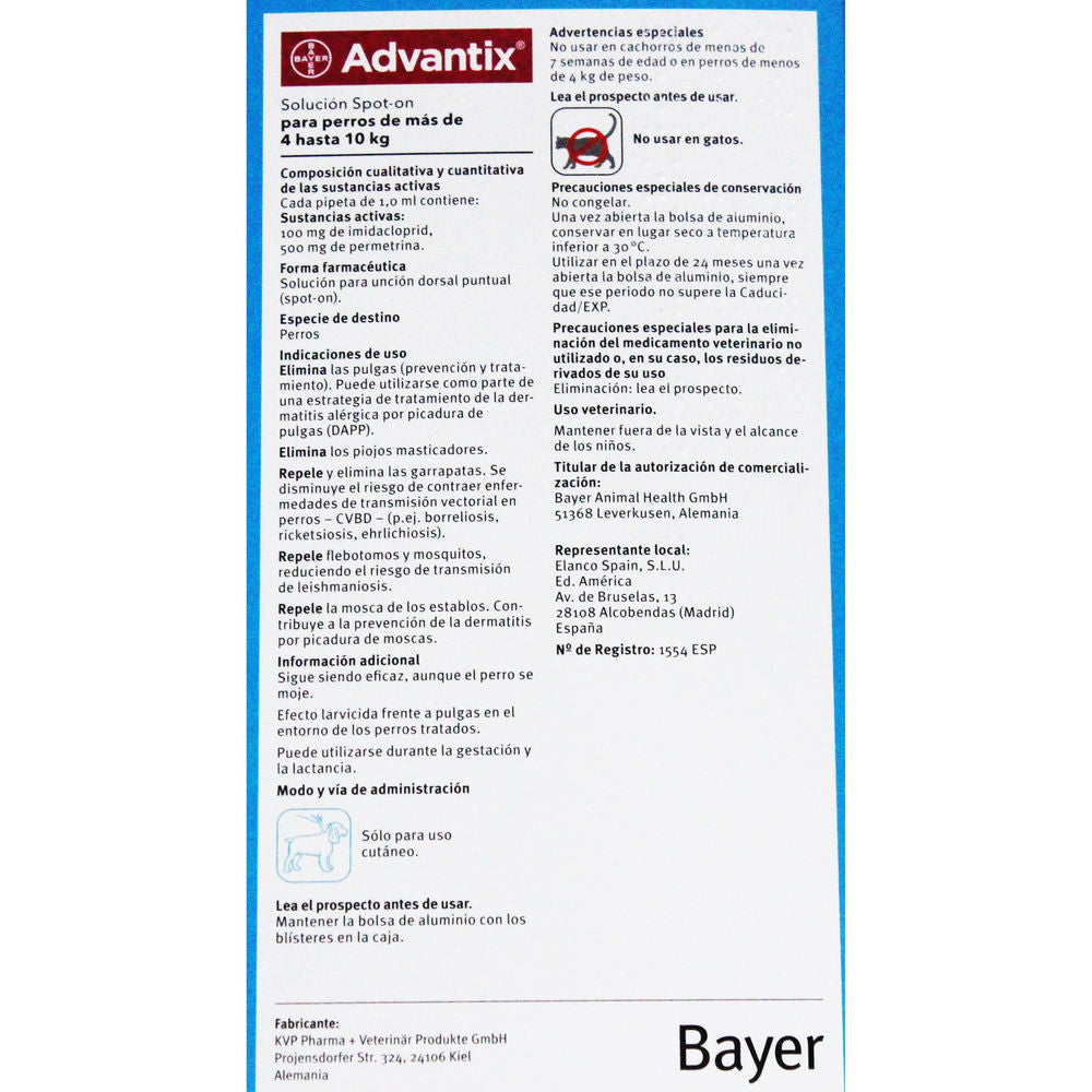 Advantix Solucion Spot-on Para Perros de mas de 4 Hasta 10 kg