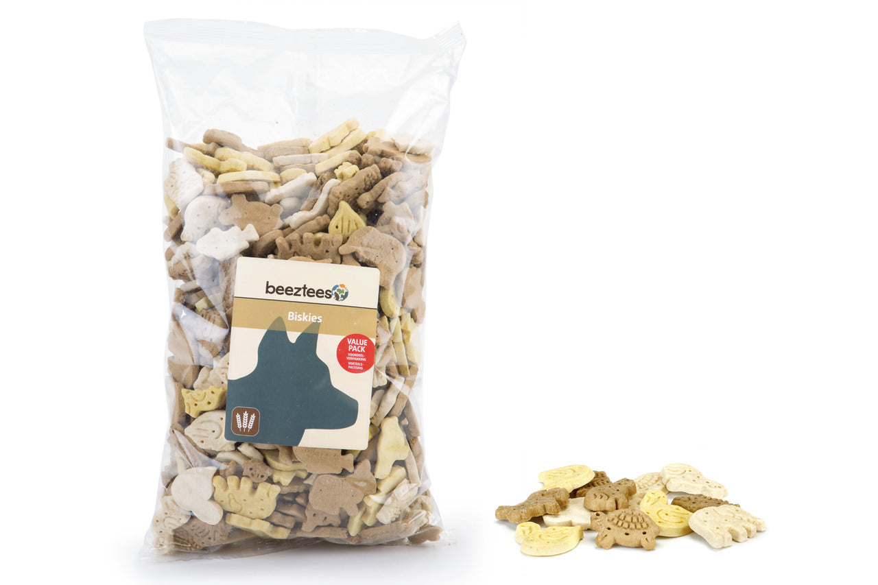 Los deliciosos Biskies de Beeztees son deliciosos snacks para el entremedio o como recompensa. El amigo de cuatro patas simplemente amará estas delicias. Una buena y sabrosa adición a la ración diaria de alimento. Las diferentes formas animales de las galletas son un bonito detalle.