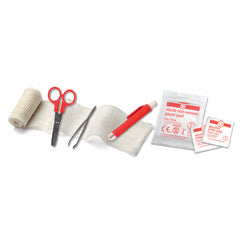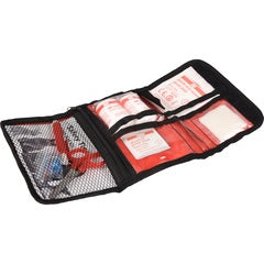 Contenido: Torniquete de goma básico - 1 unid: Para detener la hemorragia | Almohadillas con alcohol - 6 unids: Para desinfectar la piel (por ejemplo, para una inyección) o los instrumentos (por ejemplo, pinzas) | Guantes de PVC - 1 par: Proporciona mayor comodidad y sensibilidad táctil + Higiene | Pinzas de metal: Para retirar pequeños cuerpos extraños (por ejemplo, picadura de abeja, vidrio roto) | Tijeras - 1 unid: Para cortar y retirar vendas con seguridad | Gasa estéril no tejida 5 x 5cm - 2 unids: Pieza estéril que se utiliza para cubrir la herida | Venda de PBT 5cm x 4,5cm - 2 unids: Mantiene la presión aplicada durante largos periodos de tiempo | Pinzas para garrapatas | Guía de primeros auxilios | Bolsa de nylon 420D: Para guardar los suministros de primeros auxilios