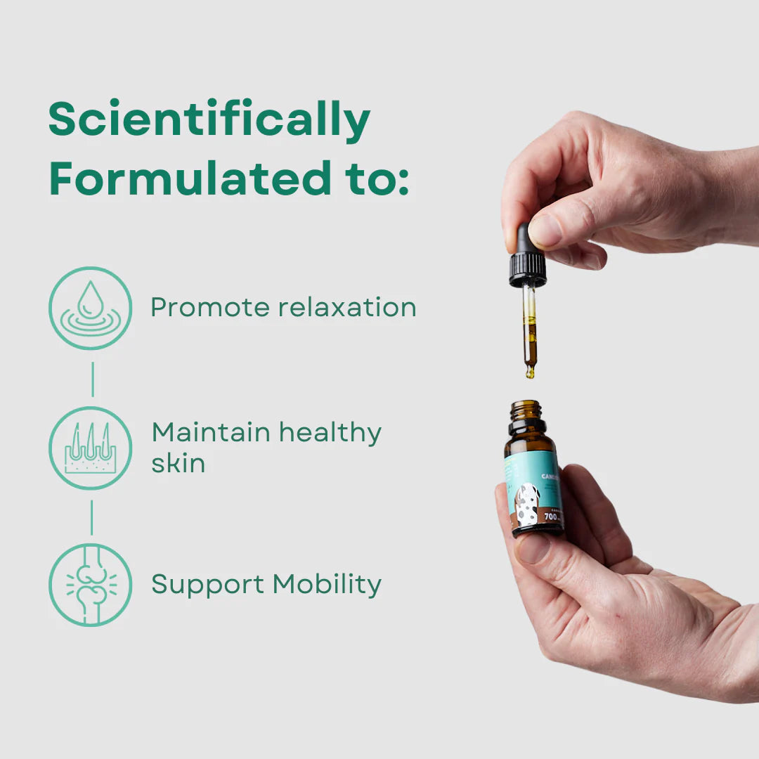Nuestro Petibidiol para perros pequeños (<13 kg) contiene naturalmente 350 mg de CBD de aceite de cáñamo, aceite de salmón y manzanilla.
