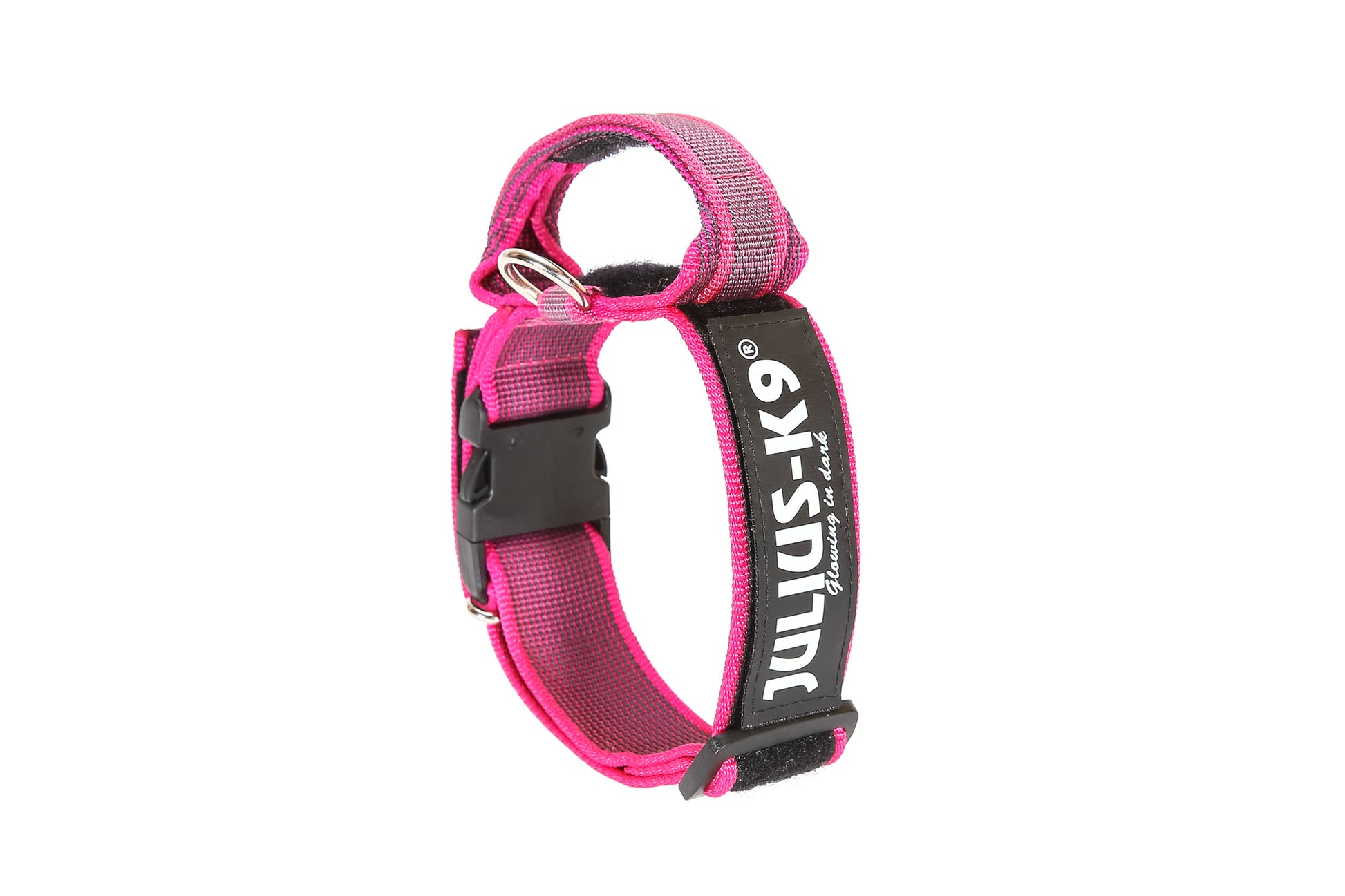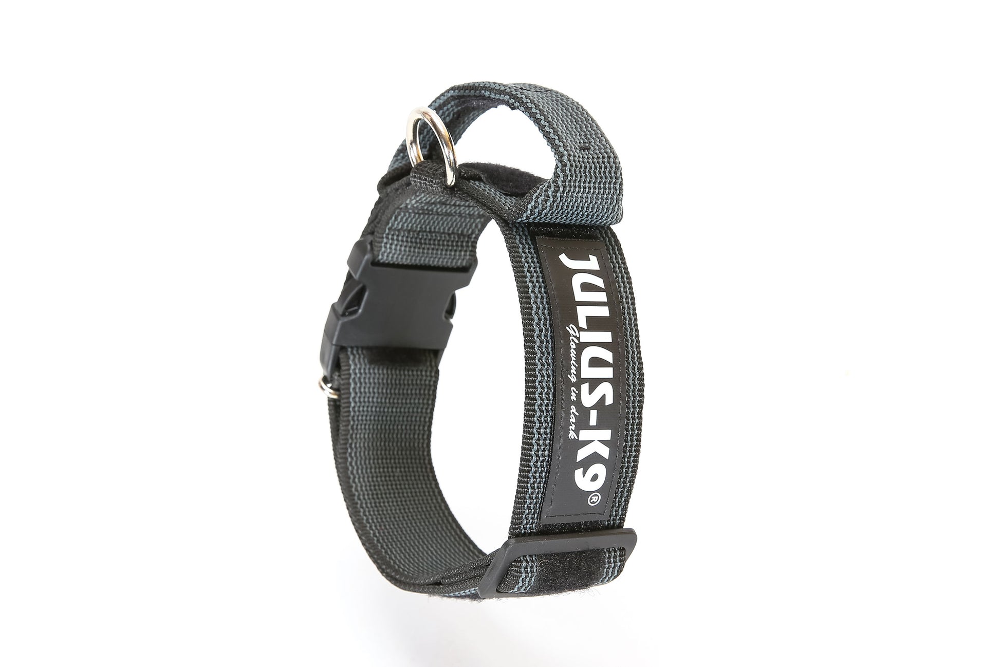 El collar Julius K9 de la colección Color&Gray® se destaca por su seguridad y comodidad para el perro | Asa plegable ubicada en la anilla central, que permite sostener al perro firmemente y levantarlo con seguridad | Hebilla resistente y cierre de seguridad | Material repelente al agua y ultraresistente | Adhesivo intercambiable con el texto JULIUS-K9® con opción de personalizarlo | Combinación de un suave tejido de poliéster y nylon que asegura un ajuste óptimo y el cuidado de la piel | Ideales para combinar con las correas de la colección Color&Gray®