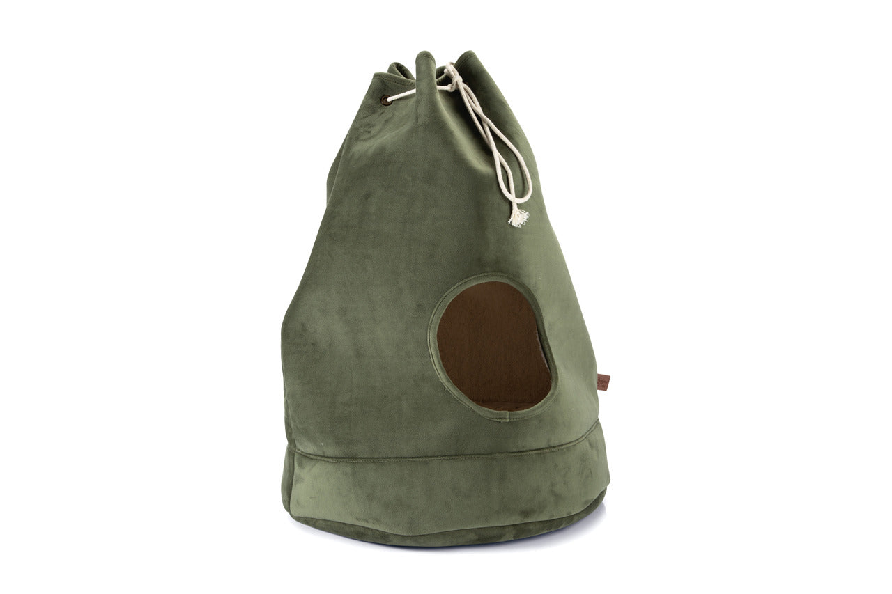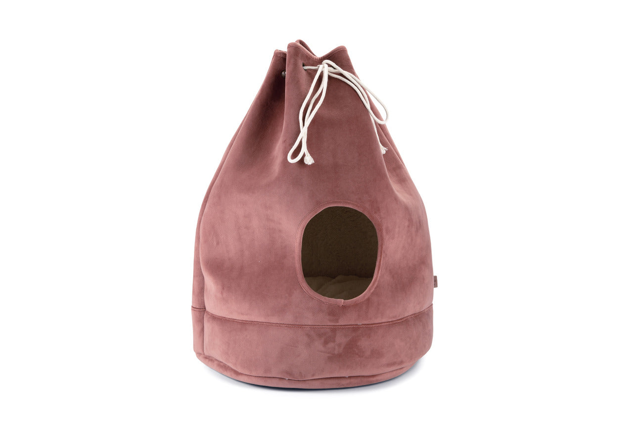 La cueva Cat Home Vilar para gatos de Designed by Lotte es un maravilloso refugio y también un hermoso accesorio para la decoración de la casa. El diseño se basa en una bolsa que se cierra en la parte superior con una cinta. El gato entra a través de la abertura frontal y luego se acurruca en la almohada suave | Disponible en 3 colores.