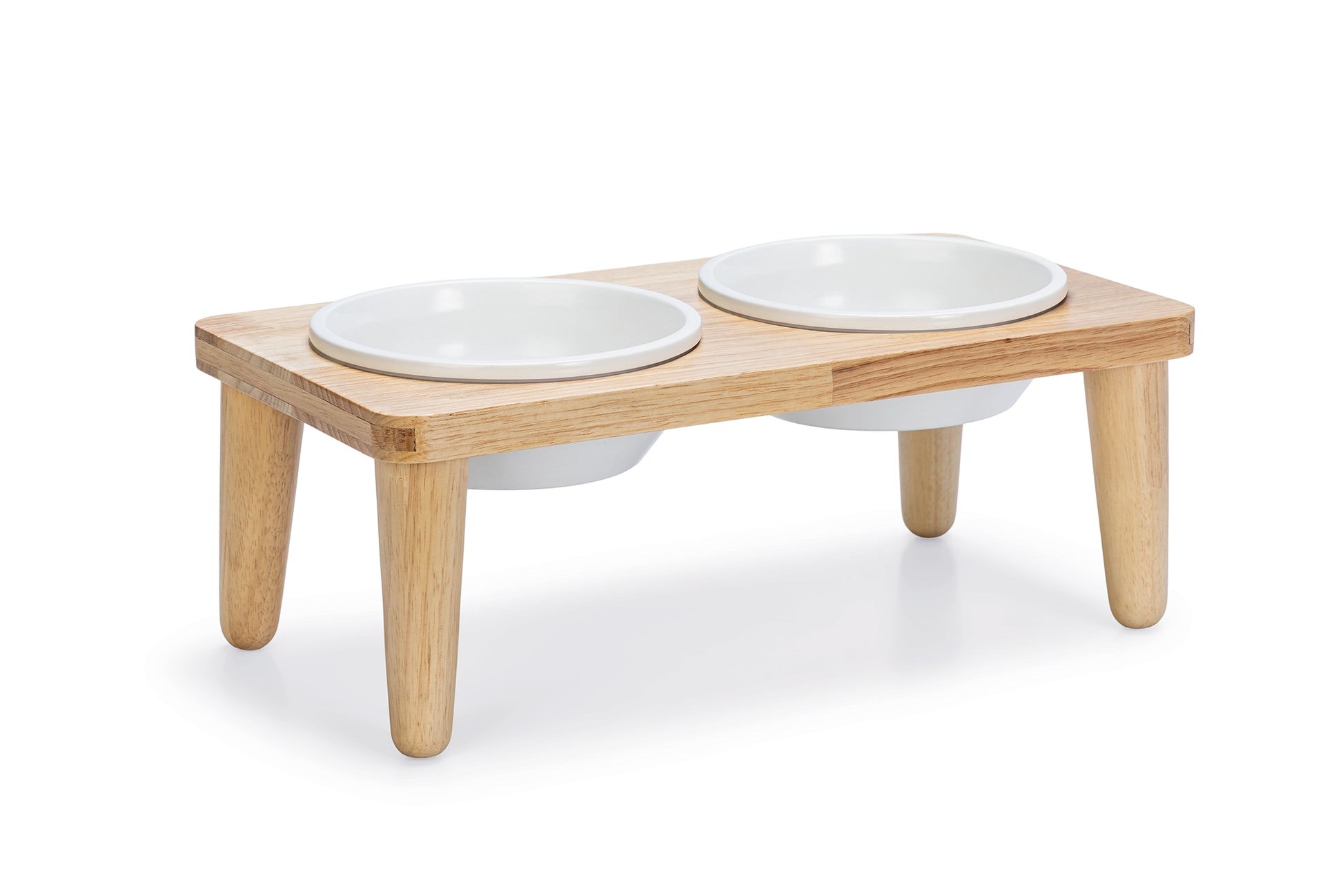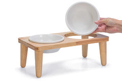 La vajilla Djeha tiene dos cuencos de cerámica, por lo que puedes proporcionarle a tu perro comida y agua potable al mismo tiempo. Si los cuencos están sucios, se pueden limpiar en el lavavajillas. Lo que hace que este conjunto sea tan hermoso es que está hecho de madera de caucho, lo que proporciona un hermoso aspecto natural a su interior