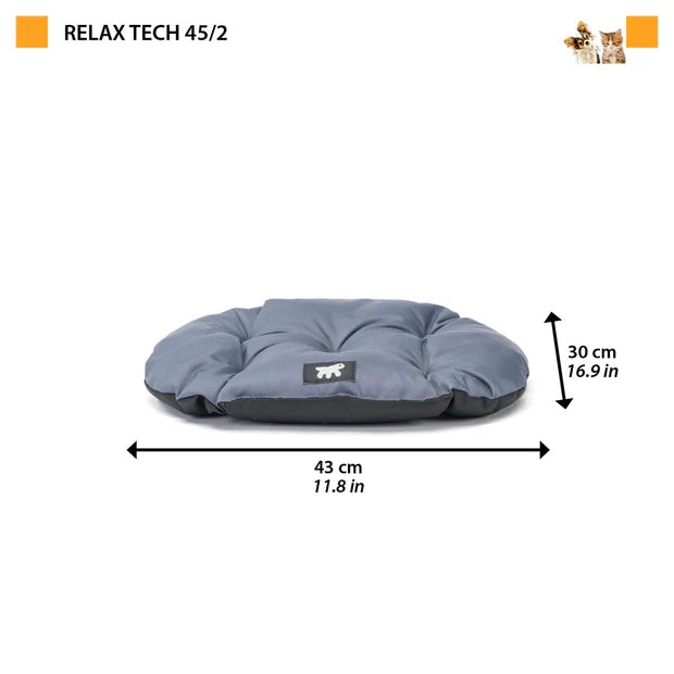 Relax Tech es un cojín para perros y gatos fabricado en tejido técnico, a prueba de arañazos y repelente al agua, resistente al uso intensivo. Garantiza un gran confort gracias a su acogedora forma ovalada y su suave acolchado. Se puede utilizar sólo como cama para su mascota o combinado con las camas de plástico duro de la linea Siesta Deluxe de Ferplast.