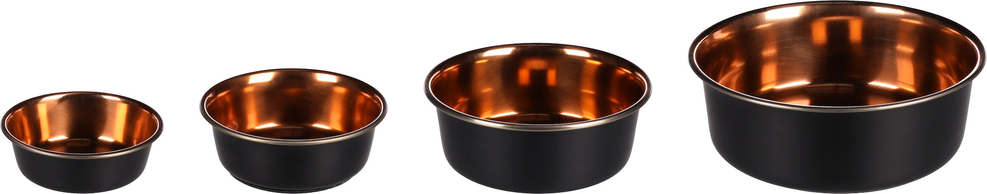FLAMINGO COMEDERO PARA COMIDA Y BEBIDA REDONDO NEGRO Y COBRE