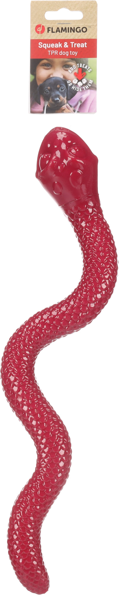 ¡La Serpiente Juguetona Sneacky Roja es perfecta para tu perro! Hecha de goma termoplástica y se puede llenar con golosinas. ¡Con squeaker para más diversión al jugar!