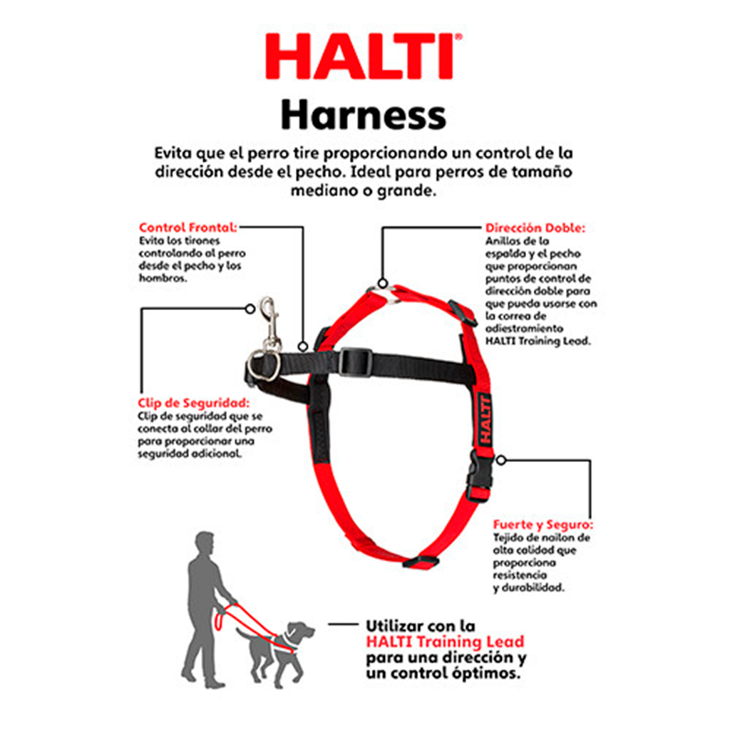 - Posibilidad de utilizar con una correa de extremo doble, Halti Training Lead, para lograr máximo control.
