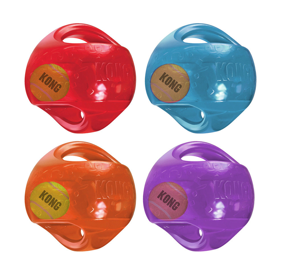El KONG Jumbler es una pelota dos en uno para el doble de diversión interactiva. La pelota de tenis en el interior y el sonoro chirriador incitan a jugar, mientras que las asas permiten recoger y agitar la pelota más fácilmente. El Jumbler ha sido diseñado como juguete resistente y es ideal para jugar a buscar. Disponible en dos formas y tamaños, el KONG Jumbler garantiza un juego emocionante y activo para usted y su perro. Colores al AZAR.