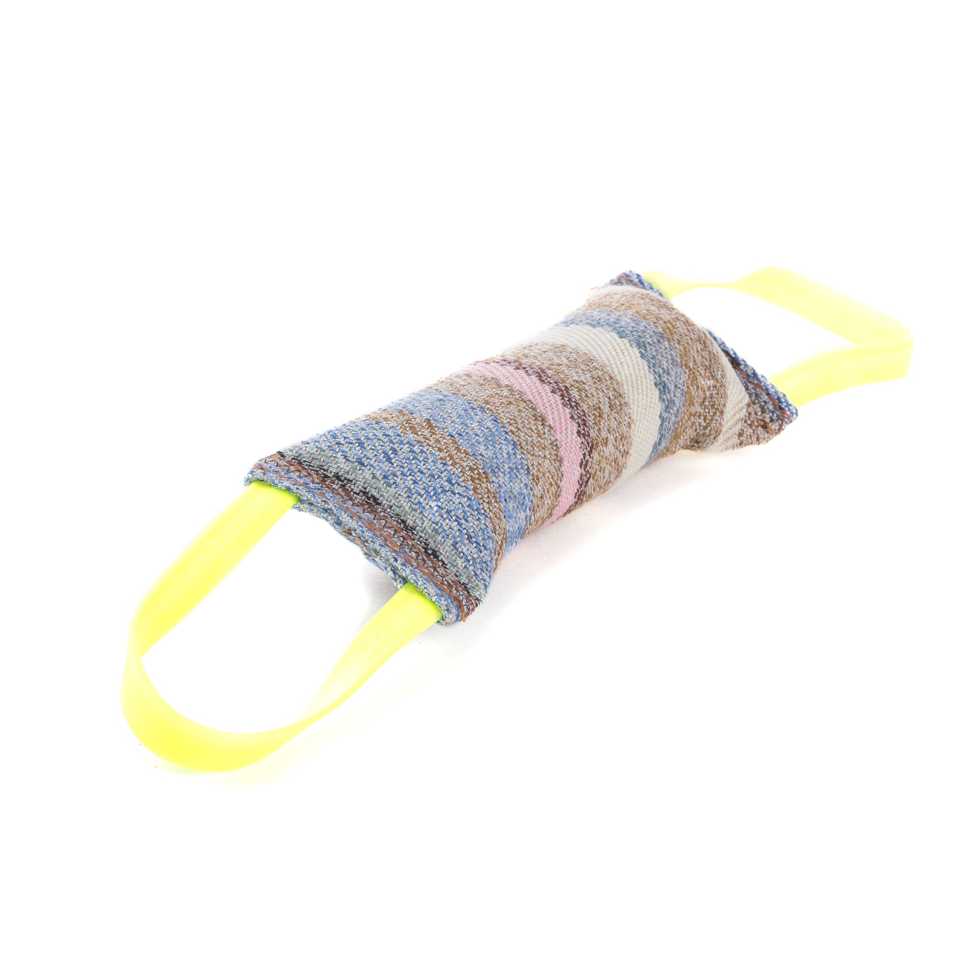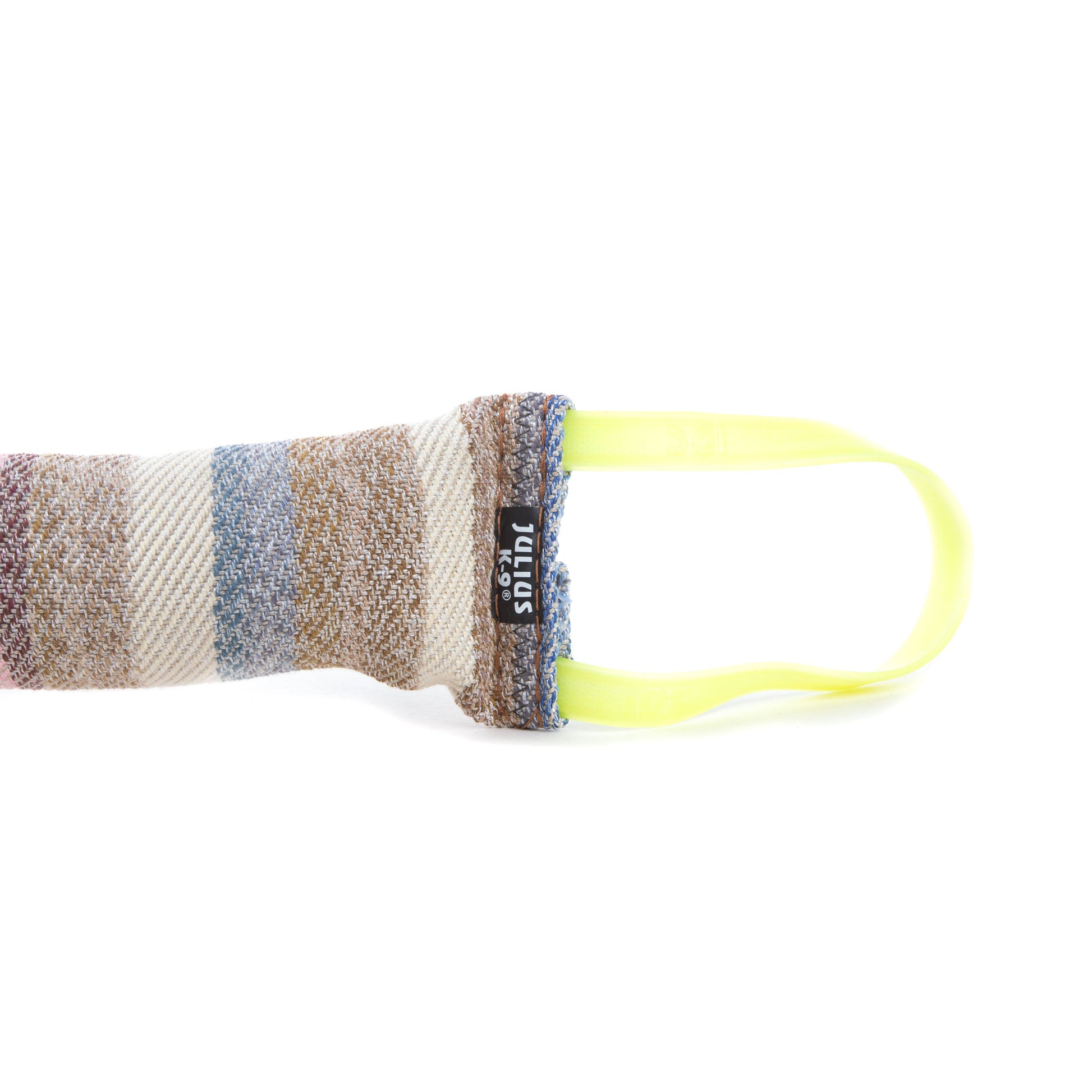 Mordedor de Julius K9® fabricado en tela francesa con nylon y algodón. Tiene dos asas suaves para evitar heridas por abrasión. | Medidas: 30cm x 7cm | Tipo de cosido: Interior