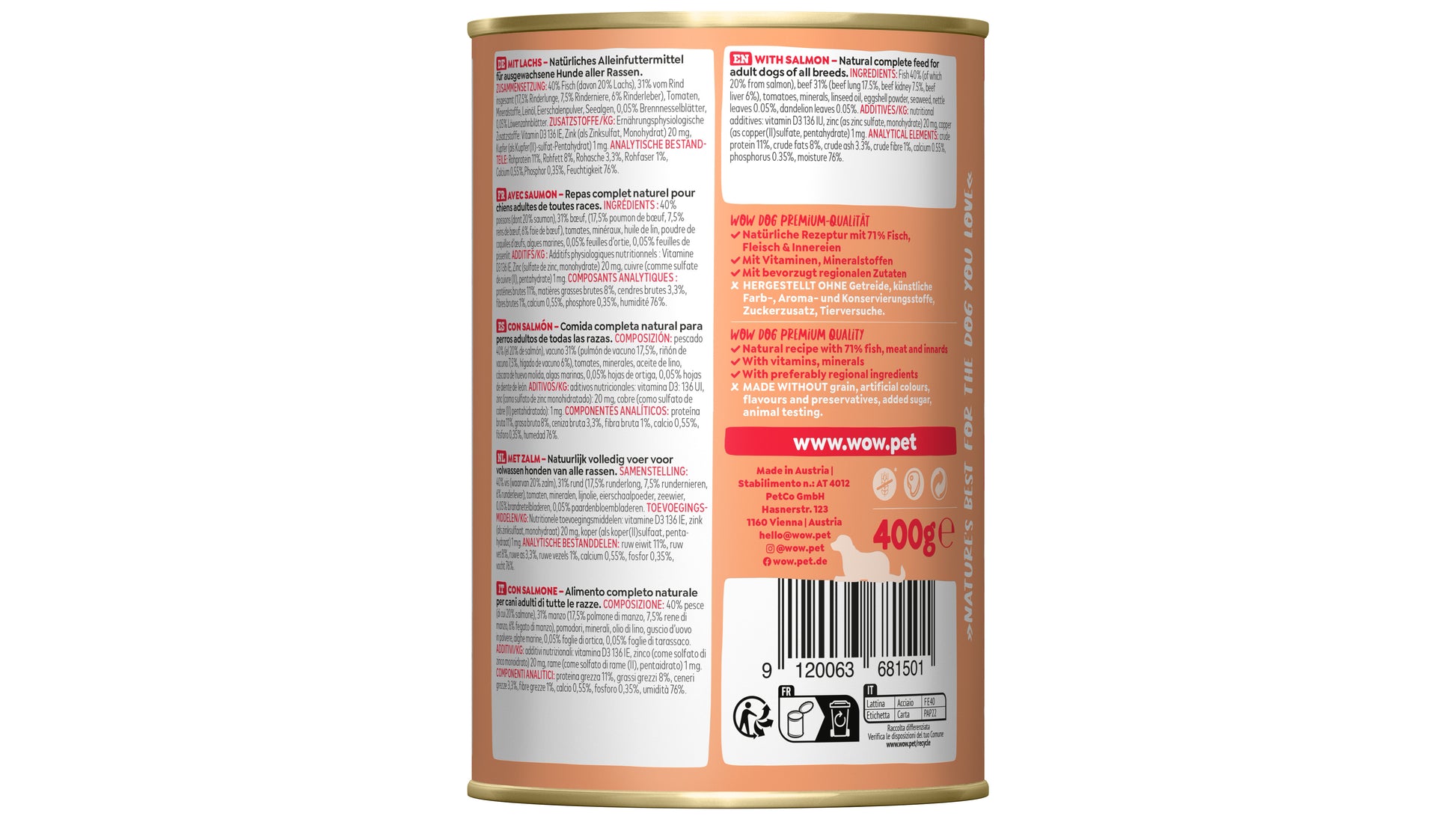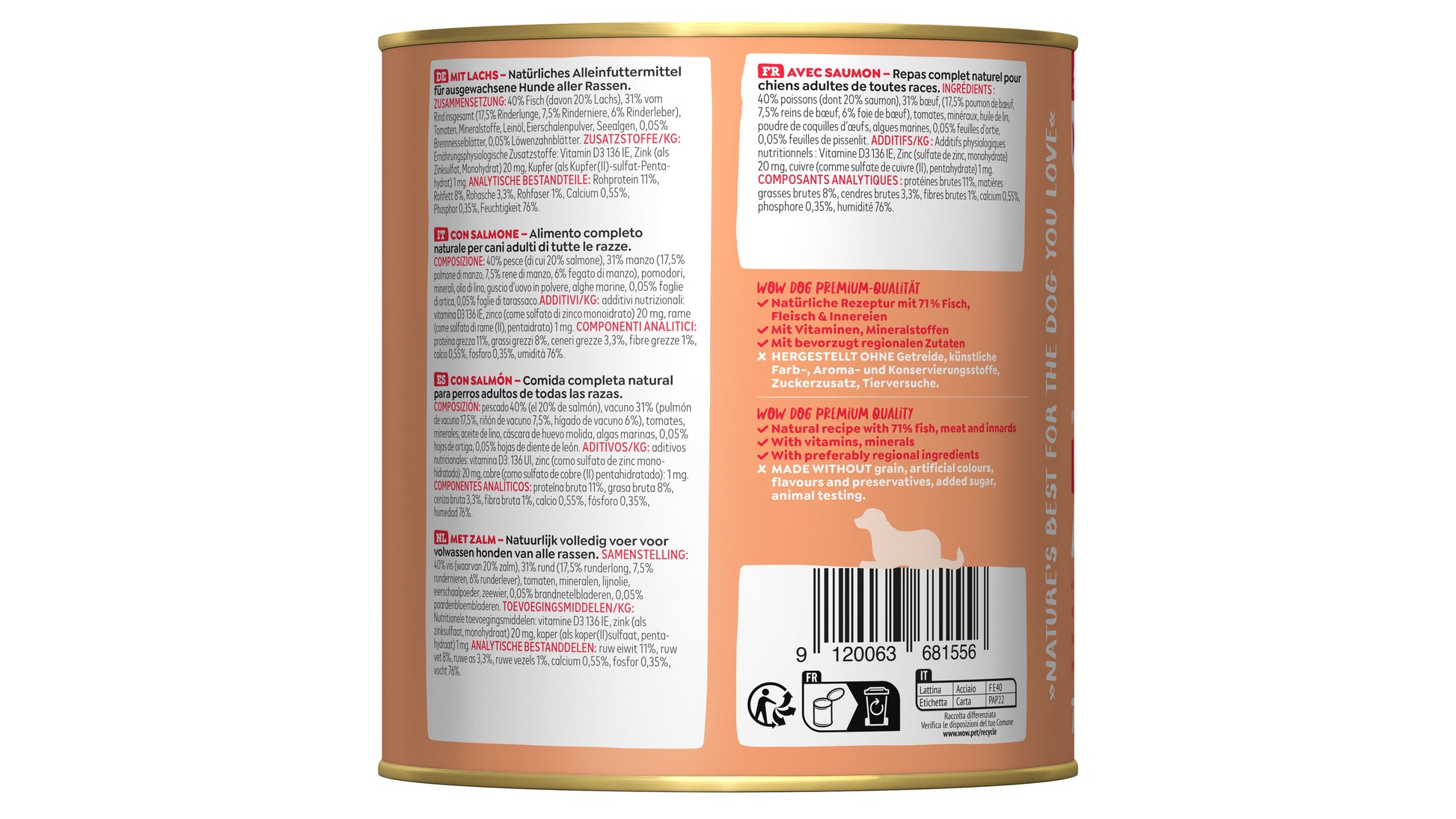 WOW ALIMENTO HÚMEDO DE SALMÓN CON DIENTE DE LEÓN PARA PERRO ADULTO